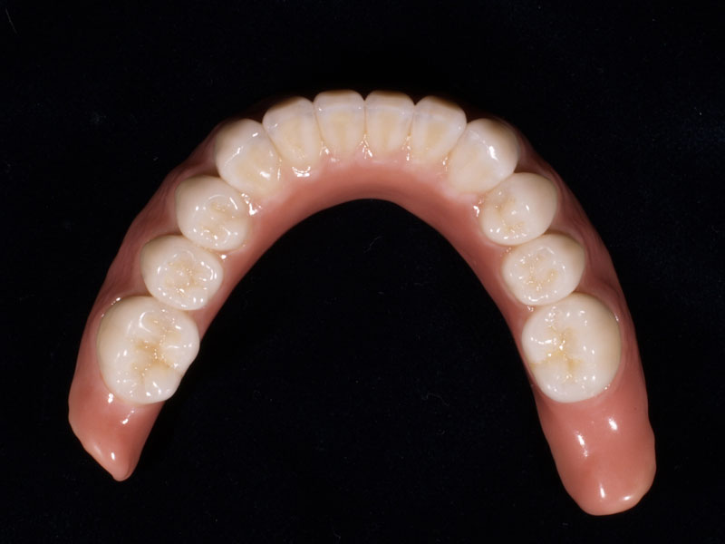 Made entirely of zirconium dioxide, facing ceramics and fine gold. Perfect red and white aesthetics (gum and tooth alignment). Absolute colour-fast and extremely easy to clean. These individualised fabrications can be realised on implants, natural pillars or a combination of the both. The work is of such high quality that we provide a 10-year warranty.